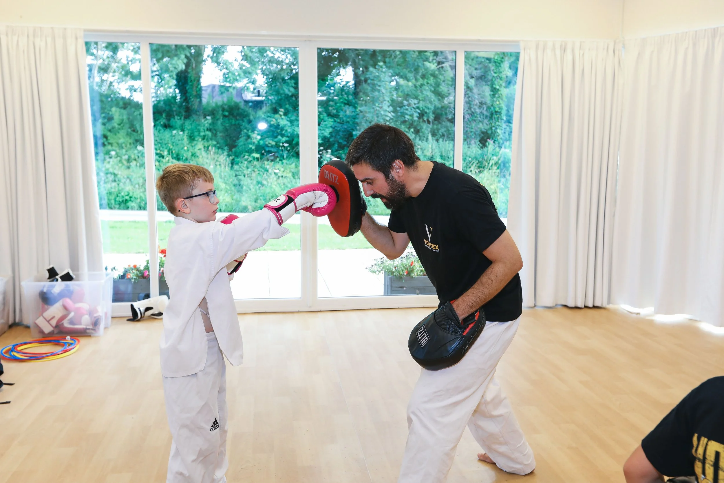 Our Kickboxing programme is designed for students who want to learn fast, effective striking skills with a clear pathway into sparring and competition. Classes combine technical padwork, footwork, movement, timing and controlled partner drills, progressing towards light-contact and semi-contact competition formats. Beginners are welcome, and students can develop at their own pace with full guidance from our experienced coach.